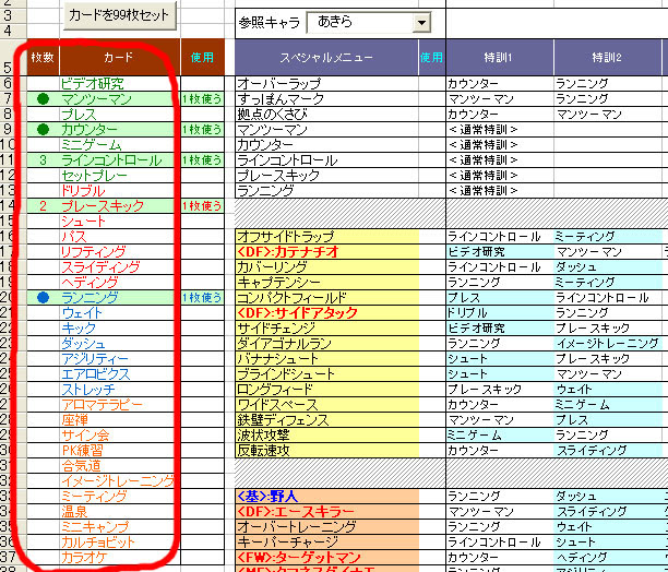 カルチョビットa ポジション別特訓メニュー攻略メモ ノゾチー3000